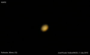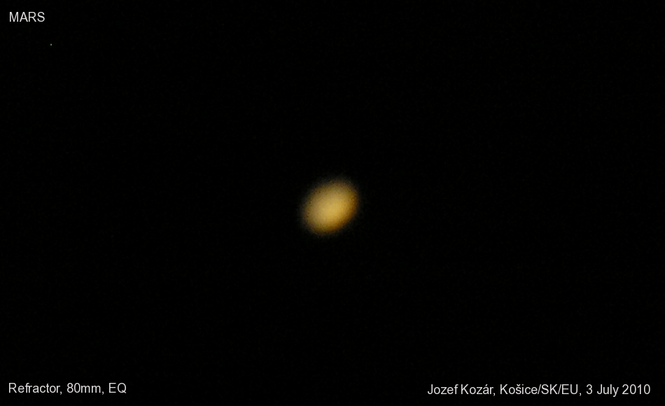 Photo of Mars through telescope in primary focus. Simple compact digital camera.