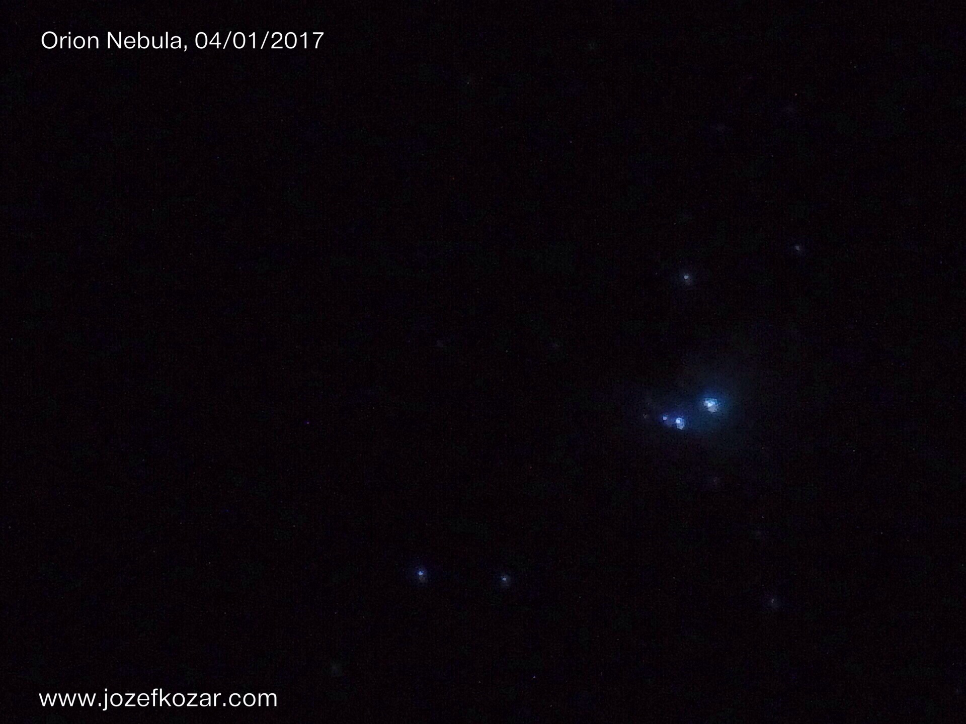 Yesterday’s last photo of the night sky. The Great Nebula in Orion. Photo taken without telescope, just only with the single camera on tripod. The light pollution was quite heavy for “deep-sky” astro-photography.