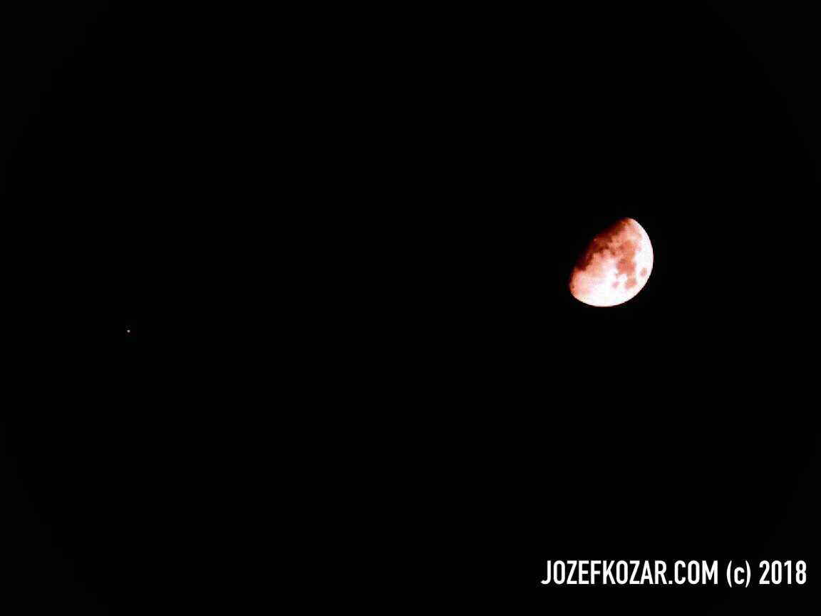 Yesterday I took the opportunity to take a photo of Mars that was optically visible very close to the Moon. I did not use my telescope, I just wanted to take a quick photo of both objects. To my surprise, the photos were quite nice. OK, I had to make some post-processing. Here are the results, what do you think?