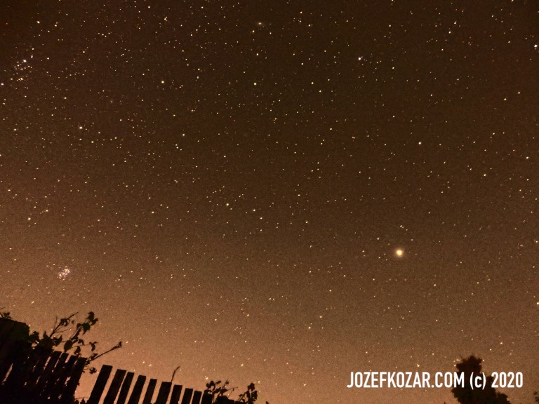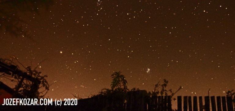 The three previous photos (above) is the view on the southern part of the sky. You can see Pleiades M45, also known as the Seven Sisters and Messier 45, are an open star cluster containing middle aged, hot B-type stars in the north-west of the constellation Taurus. The distance from the Earth is 444.2 light years.