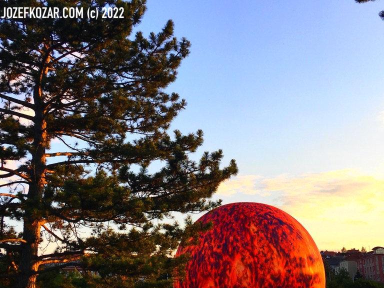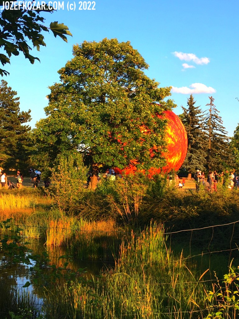 Large model of the heliosphere of our Sun hiding behind the tree.